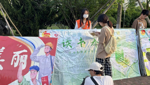 在同学们积极的参与下,书香弥漫在校园的每一个角落,绘成一幅和谐美丽的画面。活动期间,共计有110名同学报名参加活动,线上共有90人分享读书感受,线下有15名同学参加交换书籍、64名同学在便利贴上写下读书感受。志愿者们在展板处按时值班,为本次“读书养心”活动提供保障,引导参与人员有序进行书籍登记和交换。