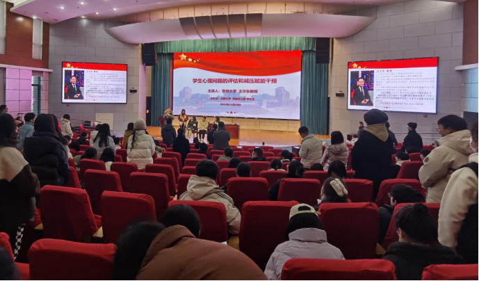 为进一步加强我校学工队伍和学生骨干对大学生心理问题的评估与干预能力,1228午,苏州大学王尔东主任受邀在我校图书馆报告厅A厅“学生心理问题的评估和减压赋能干预”专题讲座。各学院党委副书记,全体辅导员,班级心理委员,学校兼职心理咨询老师参加了本次讲座。