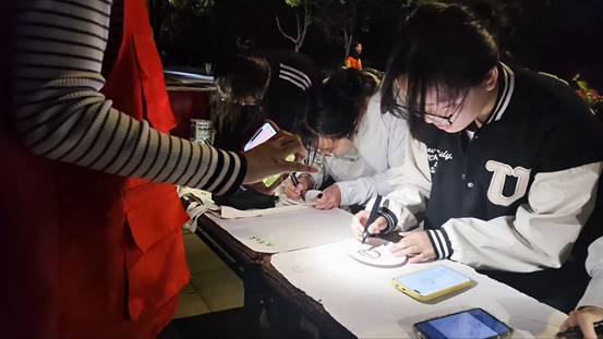 四人一组的参赛队伍中,留学生的加入让活动更具国际色彩。粮食问答题目、看图猜粮食题目考验着选手们的知识储备与日常常识;运输“蛋黄”环节紧张刺激;模拟插秧环节更是将活动推向高潮。用纸浆鸡蛋托模拟水田,竹签模拟秧苗,乒乓球模拟肥料,选手们热火朝天地进行耕种活动,仿佛置身于广袤的农田之中,一只只竹签在这里是参赛选手决定比赛胜负的关键,但一株株秧苗却是来年能否丰收的关键。“手把青秧插满田,低头便见水中天。”这一刻,大家切身体会到了农民劳作的艰辛,一粥一饭的来之不易。