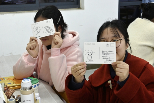 南艳青年新媒体中心精心策划,制作了满载深情的精美明信片,承载着对考研学子诚挚的祝福。考研自习室里,学子们聚精会神、笔耕不辍,为实现梦想而不懈奋斗。南青成员们轻声推门,将一张张饱含祝福的明信片送到考研学子的手中,并与他们进行简短而温馨的交流,用镜头记录下这份温暖的举动。这些由南青成员手写的明信片,不仅是祝福,更是力量的象征,为考研学子提供了心灵的慰藉,温暖的话语犹如冬日炉火,给十一月的自习室带来融融暖意。“明信片画的好棒,谢谢学弟学妹们!”奋力备战的学姐在镜头前留下明媚笑容。随着一张张明信片的传递,活动在一篇温馨和谐的氛围中圆满结束。