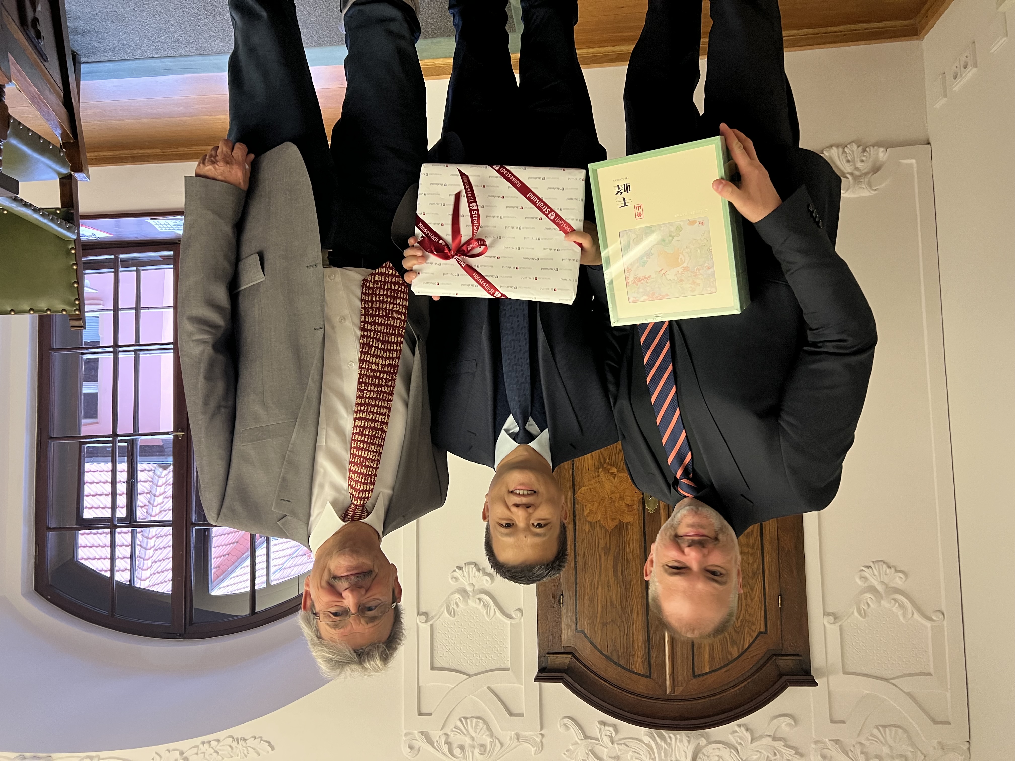 2024年11月28日,我校代表团在德国施特拉尔松德孔子学院工作期间,拜访施特拉尔松德市政府并与施特拉尔松德市市长亚历山大•巴德罗夫博士Dr.-Ing. Alexander Badrow、议长彼得•保罗先生Peter Paul进行座谈。