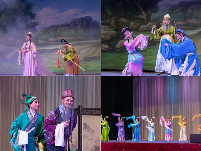 表演节目为黄梅戏经典剧目《天仙配》,共六场,分为《鹊桥》《卖身》《路遇》《上工》《织绢》《满工》和《分别》。舞台上“七仙女”唱腔悠扬,身段优美,演技精湛;董永表演真挚淳朴生动传神剧情一波三折。两个多小时的演出中,演员们通过舞蹈、身段和表情等手段,将角色的内心世界展现得淋漓尽致,用婉转悠扬的唱腔、生动传神的表演将观众带入一个充满传奇的戏曲世界,向观众们诠释出了黄梅戏艺术的无穷魅力。整场演出内容丰富,极富地方韵味特色,充分展现了高雅艺术的独特魅力。