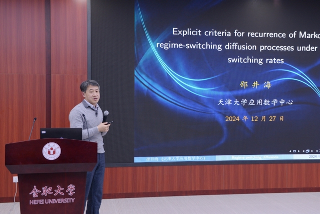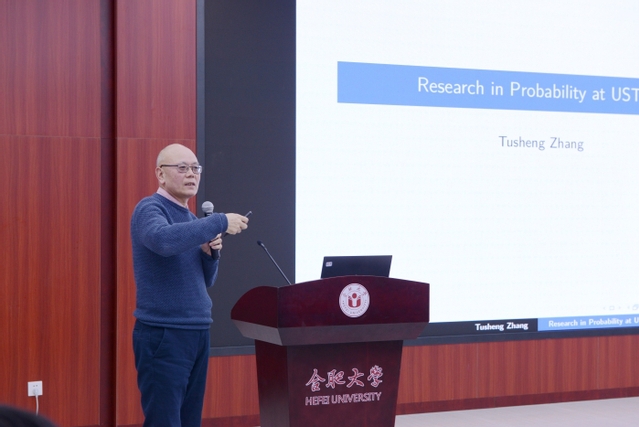 1227日,由科研处和人工智能与大数据学院联合主办的“随机微分方程与随机分析”学术报告会在大学生活动中心一楼会议室举办。天津大学王凤雨教授、邵井海教授,山东大学陈增敬教授,以及中国科学技术大学张土生教授来校作专题讲座,我校数学学科团队的师生们到场聆听。报告会由党委副书记、校长任永主持。