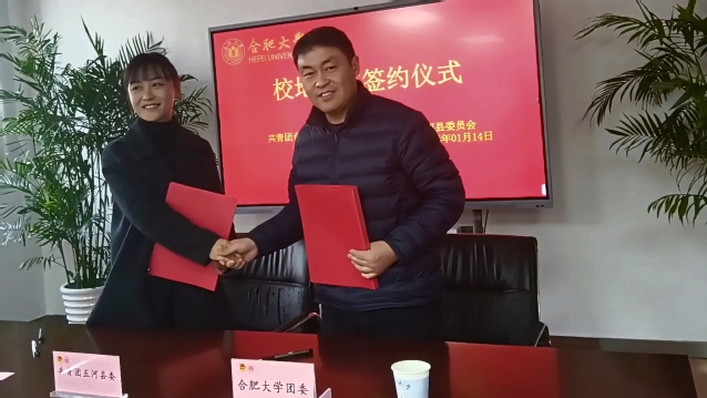 五河县团委副书记陈亚和张应杰签订了青年人才联络站共建协议,赵入德和杨红为青年人才工作联络站揭牌。(学生宣传员:张跃凡 盛海鑫;初审:李雯雯;复审:李妍妍;终审:张应杰)