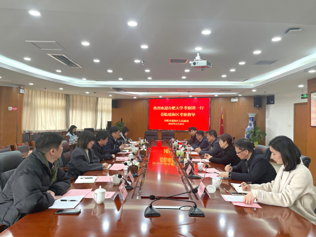 2月25日,学校调研团一行7人前往瑶海区,就校地合作事宜开展实地调研及座谈交流活动。瑶海区委常委、区政府常务副区长柳伟、合肥东部新中心建设管理办公室副主任王峰、瑶海区委组织部、教体局、科技局、投促中心等相关部门负责同志出席座谈交流。校党委组织部、学生处、人事处、科研处及国际交流合作处相关负责人参加此次调研交流。