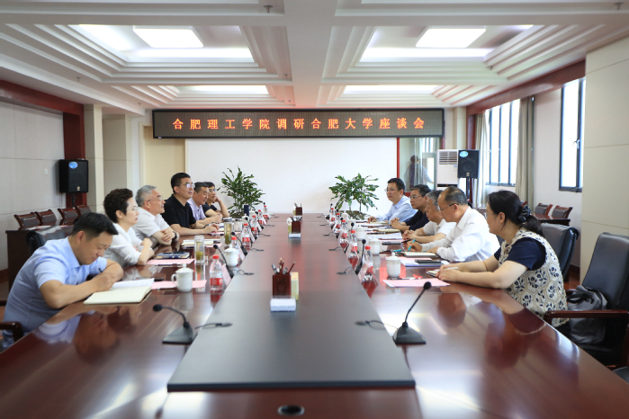 5月16日,合肥理工学院党委副书记、院长吴玉程,党委副书记、副院长李先强带队来校调研。学校在行政楼九楼东会议室召开座谈会,党委书记邬平川,党委副书记、校长任永出席会议。