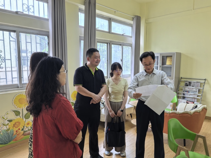 吴功福实地察看了学院文化建设长廊和语音室,走访了二级心理工作站,对学院主动加强文化建设、以文促育表示充分肯定,希望学院持续为学生营造更加安心舒心的学习成长环境。