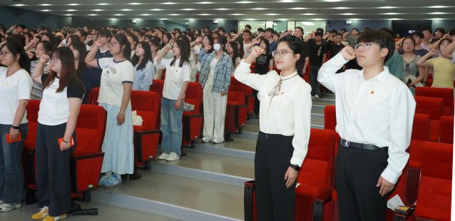 会上,举办了2025年上半年新团员入团仪式,360名新团员面向团旗庄严宣誓。先进制造工程学院教师钟伦锁、外国语学院英语专业学生陈露和经济与管理学院物流管理专业学生李家诚分别代表优秀共青团干部、优秀共青团员和新发展团员发言。与会领导为2024年度五四红旗团委、优秀团干、优秀团员、第二十届“榜样学子”、青年志愿者工作优秀组织、暑期“三下乡”社会实践活动优秀组织等获奖集体和个人颁发了奖牌和证书。