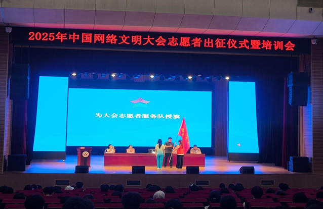 随着会议的闭幕,此次出征仪式暨培训会也画上了圆满的句号。我校159名志愿者将奔赴2025年中国网络文明大会的各个岗位,用青春和汗水践行志愿服务精神,以实际行动为网络文明建设添砖加瓦。(学生宣传员:金宛珂,初审:韩钰;复审:李妍妍;终审:张应杰)