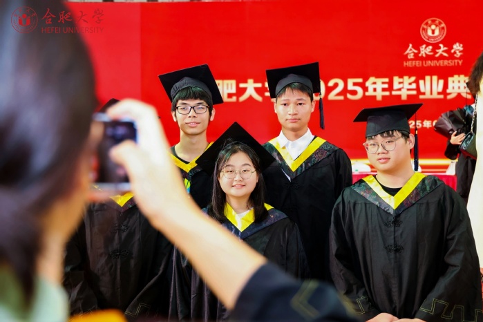 本科生毕业生代表朱茜茹、研究生毕业生代表李小凡、留学生毕业生代表苏珍秋、“西部计划”毕业生志愿者代表马慧子、教师代表肖赟教授相继发言。朱茜如表示将以校训“厚德、博学、善思、致用”为精神动力,不负伟大时代,交上一份无愧于“合大人”的青春答卷。李小凡表示,将作为基层选调生积极把技术融入乡村治理,把论文写在祖国大地上。苏珍秋感恩合大培养及“一带一路”倡议带来的机遇,立志成为中柬文化交流桥梁。马慧子承诺扎根新疆基层,以“功成必定有我”的担当投身西部建设。肖赟赠言毕业生“保持自信、学习、温情”,以中科院院士逆境成长为例,勉励做有温度的时代青年。