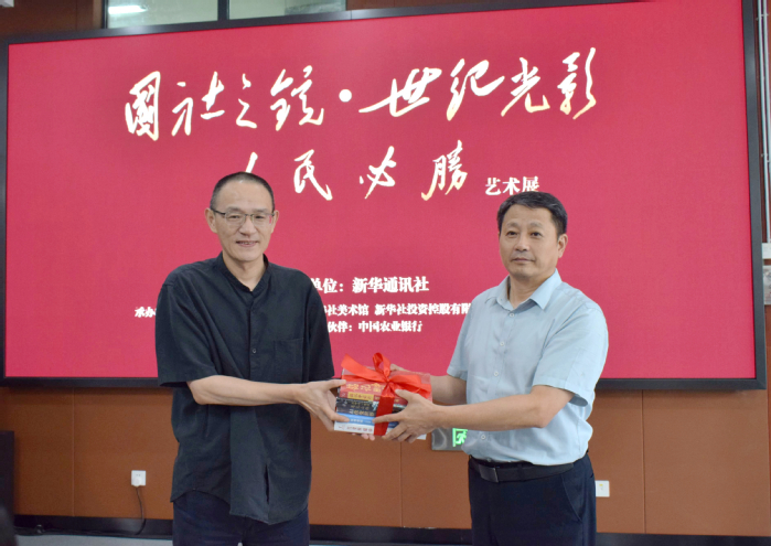 9月18日,“国社之镜・世纪光影之人民必胜”艺术展安徽高校巡展首展在我校隆重开展。新华社安徽分社分党组成员王雷,新华社新闻信息中心安徽中心主任杨善斌,新华网安徽分公司总经理徐金平,新华社安徽分社传播中心负责人、新华网安徽频道主编汤阳,我校党委书记邬平川,党委副书记周飞,党委委员、副校长白义香等出席开展仪式,新华社安徽分社员工代表及我校师生代表参加。