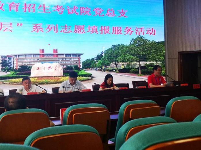 7月24—7月27日,校招生办组织宣传教师分赴阜南、颍上、宿松和池州等地市,参加安徽省教育招生考试院组织的“送服务进基层”系列志愿填报活动4个场次,力求吸引更多优质生源报考我校。
