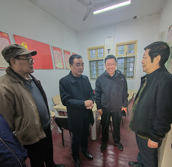10月24日,党委副书记周飞先后走访了黄山路、金寨路、宁国路三个校区离退休老同志活动室,实地调研离退休职工服务保障工作,并与部分老同志代表座谈。