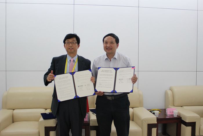 5月15日,外事处处长吴克教授、生物系副主任俞志敏教授代表合肥环境工程研究院与来访的韩国湖西大学气候变化特性化大学院负责人郑镇度教授就双方联合开展科学研究、人才培养和产学合作等方面进行洽谈,达成共识。会谈结束后,俞志敏教授与郑镇度教授共同签署了全面合作协议。