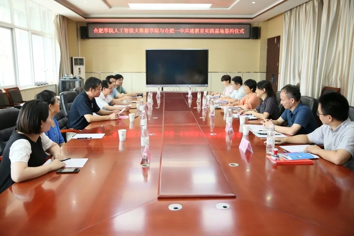 8月18日上午,合肥学院副校长陈秀率人工智能与大数据学院党委书记牛欣、院长檀明、副院长余海峰、数学与统计系主任王磊、康素玲副教授一行,前往合肥一中签订“合肥学院人工智能大数据学院与合肥一中共建教育实践基地”协议,并为“教育实践基地”挂牌。合肥一中校长封安保、副校长方小培、高一年级部主任助理徐明星、数学学科主任吴建平、实验室主任吴晓峰、优秀教师代表刘娟出席了签约揭牌仪式。签约仪式由方小培主持。