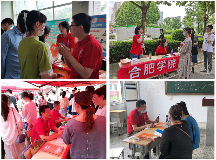6月23日至27日,校招生办组织11批40余名招生宣传员,由各二级学院院领导带队前往安徽省16个地市的67所高中。同时在6月25日至26日期间,校招生办还组织宣传教师分赴阜阳、临泉、马鞍山、芜湖、铜陵、宿州和蚌埠等地市,参加安徽省教育招生考试院组织的“我为群众办实事”系列志愿填报活动共9个场次。参与招生宣传的教师通过热情、高效、细致的宣传和咨询服务,为考生及家长填报志愿提供了科学合理的建议和意见,我校的招生宣传得到了广大考生及家长的高度关注。