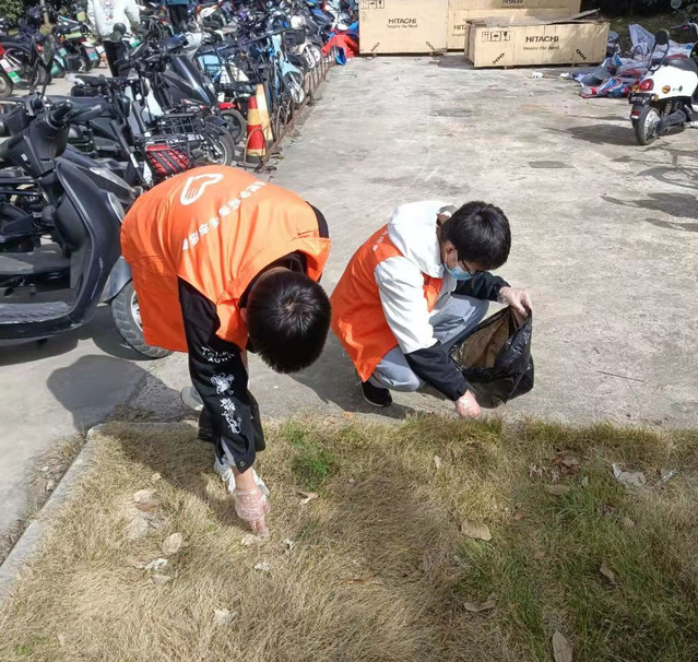 绿色优美的校园环境是文化育人的重要载体,能够让学生在潜移默化中受到熏陶与教育。青年志愿者们穿梭在校园内的各个角落,捡拾垃圾、清扫道路、护苗除草;留意着教学区内的“牛皮癣”,擦拭黑板、清洁教室、清理过期的宣传标语及贴士通知。一个个忙碌的身影充分展示了“我奉献,我志愿,我服务,我快乐”的志愿精神,一抹抹新绿让合院沉浸在春日的温暖之中。