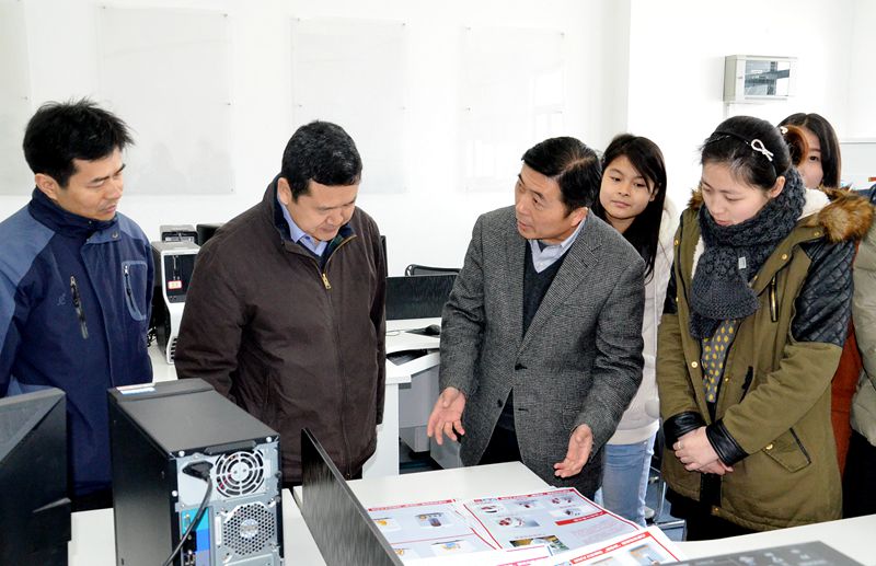 考察中,武世兴一行走访了我校产学研平台、嵌入式实验室“安徽深装合大工业设计有限公司”,分别参观了景观设计中心、产品研发中心,荣事达精品小家电展示室、工程部、会展设计部、数码图文部等学生实习培训现场,察看有关情况,参观工业设计教学成果等展示,听取大家意见建议,随后与我校管理系、电子系负责人进行了深入交流。