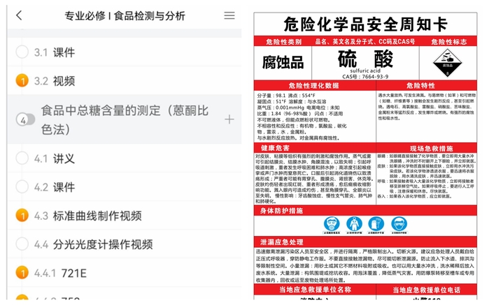 无独有偶,生物食品与环境学院的李赓老师这学期教授的课程是《食品检测与分析实验》,课程中的实验涉及腐蚀性试剂的使用,具有一定的危险性,线上教学期间,李老师巧妙调整课程内容,将实验安全等内容搬进了线上课堂。通过“学习通”发放安全周知卡并上传仪器操作视频,李老师让学生在课前预习及了解实验所使用的试剂的相关情况以及实验的正规操作和防护方法,帮助学生牢固树立实验安全意识。为提高学生的学习效率,李老师利用“学习通”在课程章节中建立任务点,要求学生按时完成,同时及时发布测试题检测学生的学习情况。“作为专业基础技能操作课程,也是学生进入实验室和进行实验操作的‘第一堂课’,这一课程对同学们的实验安全意识和操作严谨性有着很大的影响。”跨越时空,李老师在“云课堂”上为学生扣好了实验安全“第一粒扣子”。
