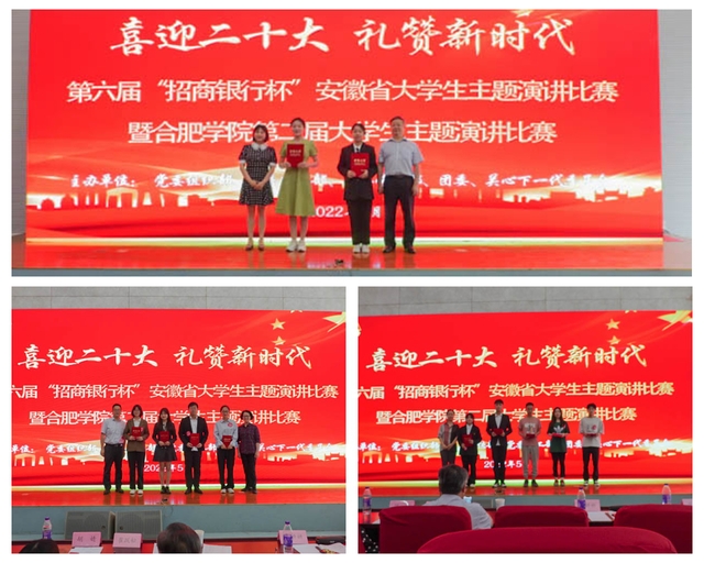 5月26日,合肥学院“喜迎二十大、礼赞新时代”第二届大学生主题演讲比赛在图书馆报告厅举行。比赛由党委组织部、党委宣传部、党委学工部、团委、关心下一代委员会联合举办。安徽省演讲学会会长崔跃松、招商银行云谷路支行行长胡婧、教育学院教授鲁世秀、党委学工部思政教育中心主任黄锐、校团委副书记李妍妍担任评委。