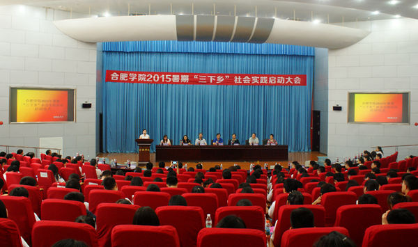为加强和改进大学生思想政治教育,鼓励大学生投身社会实践,7月7日,以“践行八字真经,投身四个全面”为主题的2015年大学生志愿者暑期“三下乡”社会实践活动出征仪式在图书馆学术报告厅A厅举行。校党委副书记丁明出席会议,组织部、宣传部、学工部、工会、思政部、团委相关负责同志和各系团总支书记、各服务队领队教师、思政部指导教师和暑期社会实践大学生志愿者参会。出征仪式上,经济系、思政部教师代表和学生志愿者代表先后发言,介绍经验,鼓舞士气。主席台领导分别为校级重点团队和特色团队授旗。仪式由校团委副书记杜娟主持。