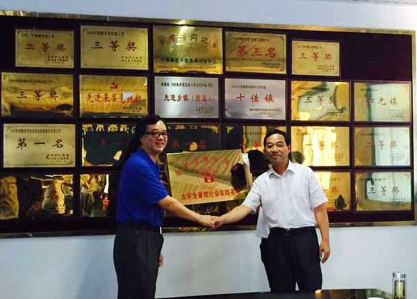 丁明与石头镇镇委领导为大学生暑期社会实践基地揭牌