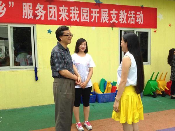 在徽州区黄发幼儿园,丁明与正在为幼儿园做装饰的教育系志愿者进行了亲切交谈,与园长及志愿者代表举行了座谈会。在庐江县石头镇,丁明为小朋友们赠送了书本和文具用品,并详细解了经济系实践活动的组织开展和队员们的饮食起居情况,与志愿者和当地工作的我校毕业生进行了深入交流。他希望大家能全面了解当地的经济、社会、文化,争取建立志愿者长效服务机制。随后,丁明与石头镇镇委领导共同为合肥学院大学生实践基地揭牌,并考察了当地重点企业万磁公司。在肥西县铭传乡,他看望慰问了学生社团联合会的暑期社会实践活动团队,听取了活动开展情况汇报。他希望同学们勇于克服困难,砥砺品格、磨炼意志,把所学专业知识应用于实践,相互团结,注意安全,圆满完成实践任务。在包河区大圩镇,丁明一行参观了机械工程系支教学生开展的活动,仔细询问了活动组织、食宿安排等情况,并就创新创业及志愿者服务工作的深入合作与大圩镇相关部门进行了交流。