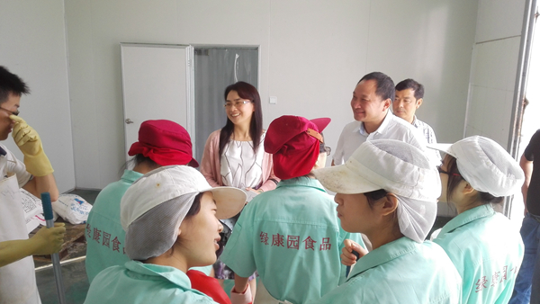 85日,合肥学院副校长陈秀教授在生物与环境工程系主任俞志敏教授以及认知实习指导老师的陪同下,前往安徽绿康园食品有限公司,检查生物与环境工程系2013级食品科学与工程专业认知实习工作,并与安徽绿康园食品有限公司鲍祥胜总经理以及安徽省庐江台湾农民创业园管理委员会负责人举行了座谈会,看望了正在生产线上辛苦工作的同学们。