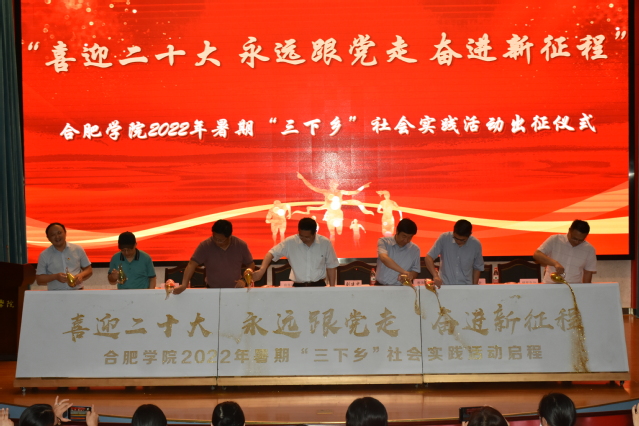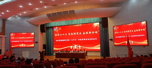 6月23日下午,我校在图书馆报告厅A厅举行2022年暑期“三下乡”社会实践出征仪式。宣传部、教务处、学生处、研究生处、马克思主义学院、校团委等部门领导及校级重点团队指导老师和团队成员代表参加了出征仪式。仪式由校团委书记王玉主持,校党委副书记刘建中出席并讲话。