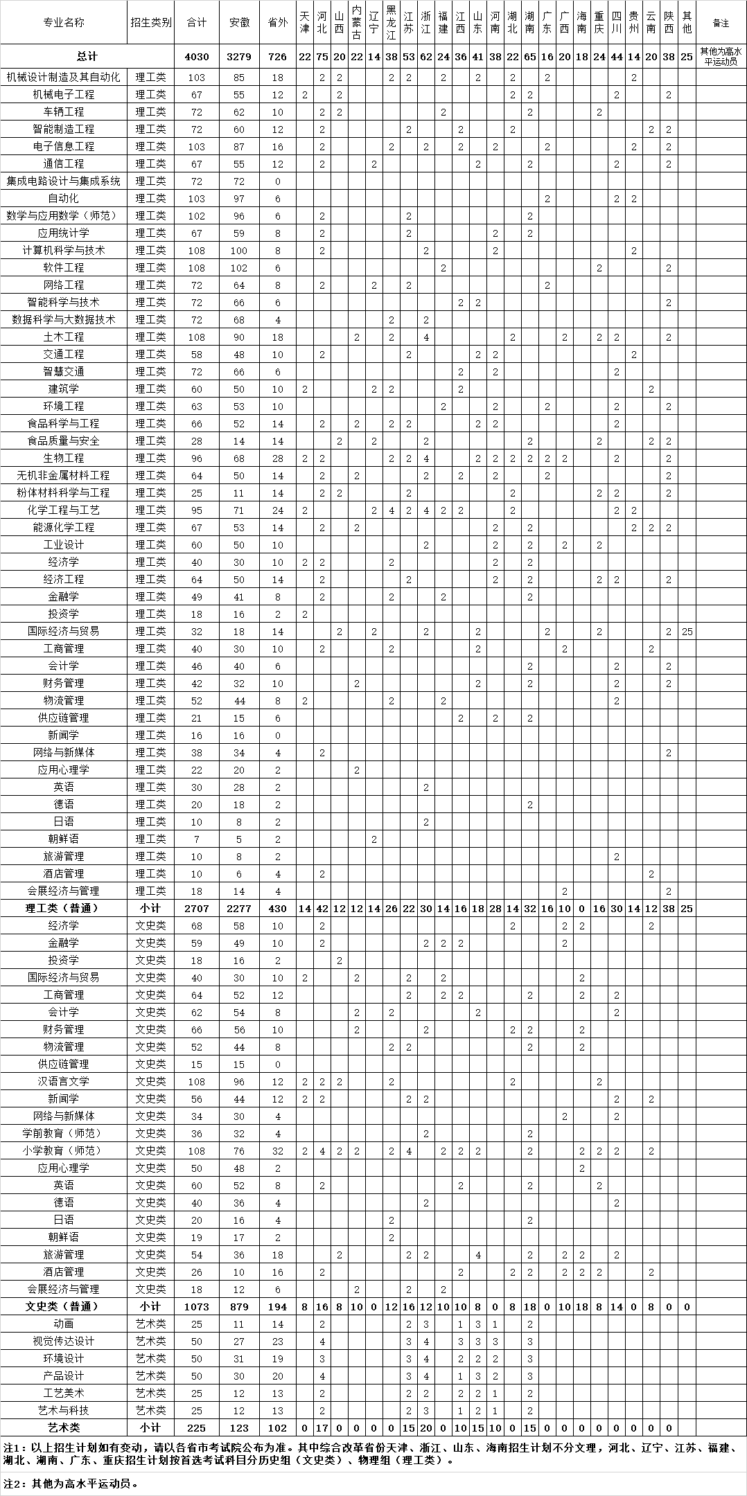 合肥学院2022年本科分省分专业计划安排表(不含专项计划、中外合作专业计划)(安徽省院校报考代码为9110)