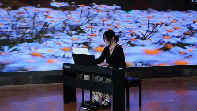 决赛现场,不论是中国古典乐器古筝、二胡、葫芦丝、竹笛,还是西方特色乐器钢琴、小提琴、架子鼓等,都给现场观众带来了一场美妙的听觉盛宴。竹笛表演曲目《浮光》,悠扬绵长的笛声就好似拂过耳畔的清风,沁人心脾;古筝表演让人好似置身竹林神隐自在,又好似置身江畔独步寻花;架子鼓表演《山海》令现场气氛达到沸点,现场掌声热烈。比赛期间,大学生艺术团舞蹈队为我们带来了十分养眼的舞蹈演出,声乐队带来的歌曲《奇妙能力歌》与《克卜勒》,轻快动听。
