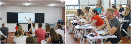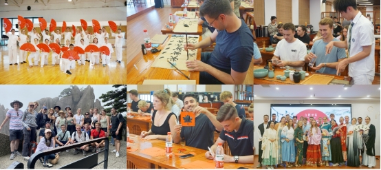 我校为来自德国的大学生们安排了丰富多彩的活动。不仅有中文的学习,还有各项中国传统文化的体验。不仅有中国企业的参访,也有对中国大好河山的考察。在中文课上,中文老师不仅教授了拼音和汉字,还介绍了中国的传统文化和中国的概况,让学生们对中文、中国产生了浓厚的兴趣。在传统文化体验课上,书法老师教授了基本的书法知识,学生们有机会亲自挥毫泼墨,一览中国书法的美妙与艺术;学生们跟着老师学习剪纸技艺,剪出了形态各异的中国汉字;专业的茶艺老师进行了茶艺表演和讲解,让学生们体会到中国茶文化的独特魅力;学生们还亲身体验了汉服,感受古代的风姿和仪态,并参与了踢毽子、投壶等中国传统游戏。