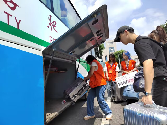 9月6日-7日,我校志愿者做好全天候迎新工作的充足准备,为新生提供报到、注册等一站式服务。校内,迎新志愿者在新生专属报到处,帮助新生完成入校手续办理等报到工作,主动引导新生前往宿舍楼下,帮助新生搬运行李并暖心提供各项咨询服务;校外,学校在火车站和高铁站分别设置新生接待点。迎新前一天,志愿者们就抵达地点提前熟悉路线,与车站工作人员对接,统筹安排迎新工作。迎新当天,志愿者们提前抵达站点,各司其职,以热情饱满的态度,身着马甲,手持校牌,积极为新生和家长引导路线,在将其送上校车的过程中向新生介绍校园环境,并对新生的问题耐心积极解答。内外联动,志愿者身影一路相随,以无微不至的关怀为他们提供贴心的服务。新生与家长们不时点头,对于志愿者们的热情细致也给予了高度评价。
