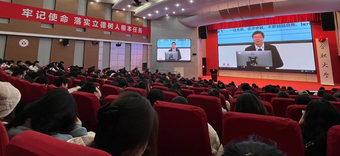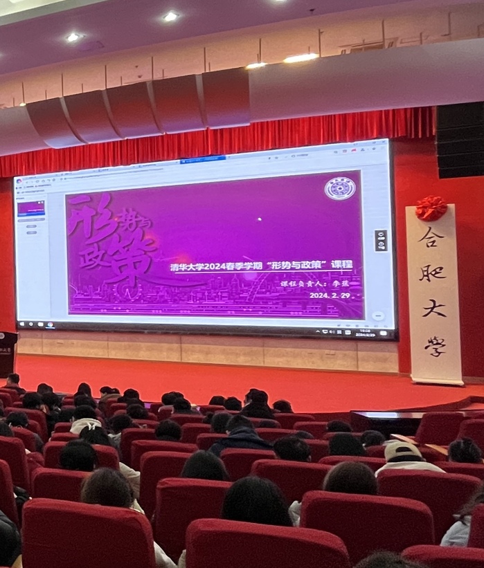 为深入贯彻习近平总书记关于“大思政课”的重要指示精神,进一步推进思政课教学改革创新,我校于2024年春季学期引入清华大学《形势与政策》课程并组织开展相关教学工作。2月29日晚,马克思主义学院全体思政课教师和7000余名学生与清华大学师生云端同上一堂《形势与政策》课。清华大学党委书记、中国科学院院士邱勇围绕“中国式现代化”主题与师生交流。