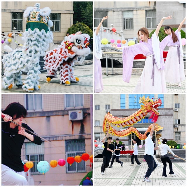 活动现场,五彩斑斓的花灯挂满了一期校园湖畔的各个角落,吸引了近百名同学驻足欣赏,拍照留念。华裳倩影,翩若惊鸿,身着汉服的舞者跟随音乐翩翩起舞,威武雄壮的龙狮在舞者的操控下尽显力量与美感,悠扬动听的吉他弹唱传递着青春与梦想的和谐共鸣。动与静的结合,构建出一副气韵生动的中华传统美学意境图,使得在场人员皆沉浸其中,在交流互动中切身体会中华优秀传统文化的魅力。