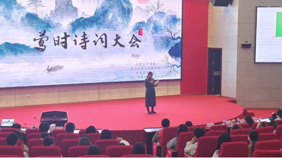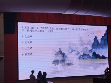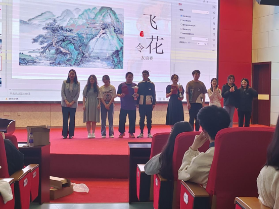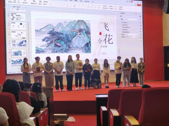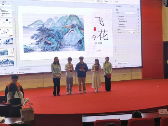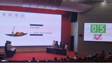 比赛在舞龙舞狮俱乐部同学的精彩表演中拉开帷幕,刘美艳作开场致辞,现场分为团队赛、个人赛和友谊赛三项赛程。团队赛中,六支团队分别派出两名选手上阵,在激烈的抢答题中,各校选手都展现出了出色的团队意识和丰富的诗词储备。个人赛环节,各选手将按照组号轮流答题,利用有限的时间在九宫格找出隐藏的诗句;随后是沙画视频猜诗句比赛,选手们需要根据所看到的画面猜出对应诗句,既考察选手们古诗词记忆背诵的基础,也检视选手们对古诗词的理解和感悟。