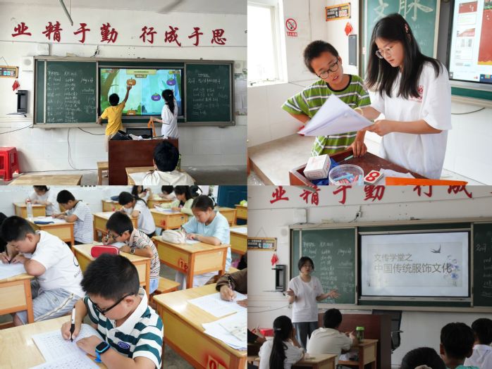 语言文化与传媒学院暑期“三下乡”实践团队志愿者们组建“爱洒乡村 教育同行”教学团队。教学团队分为书画组、英语组、国学组和歌舞组。教学内容以传统文化为主,教学时间从76号持续到713号。