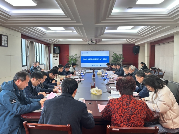 为进一步提升高等教育学位管理水平,12月31日下午,校学位评定委员会召开会议,集体学习《中华人民共和国学位法》。会议由校长、校学位评定委员会主席任永主持。