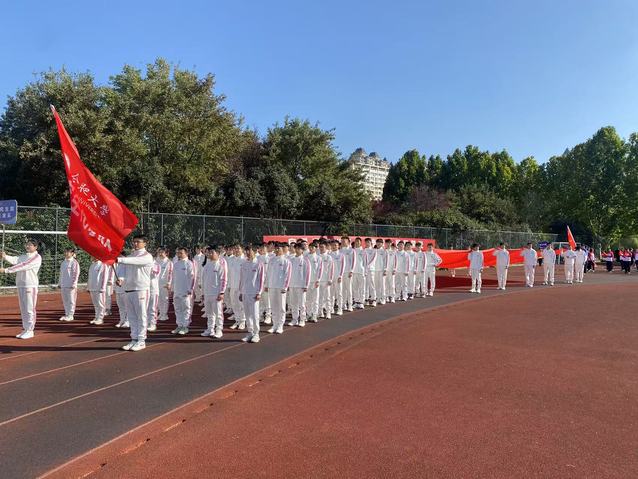 开幕式上,研究生代表队的方阵格外引人注目。队员们身着红白相映的统一服装,步伐整齐有力,口号嘹亮铿锵,手中挥舞的校旗与展板交相辉映,既彰显了研究生群体严谨治学的学术态度,又传递出敢于挑战、突破自我的运动激情,成为全场对这支队伍的深刻初印象。
