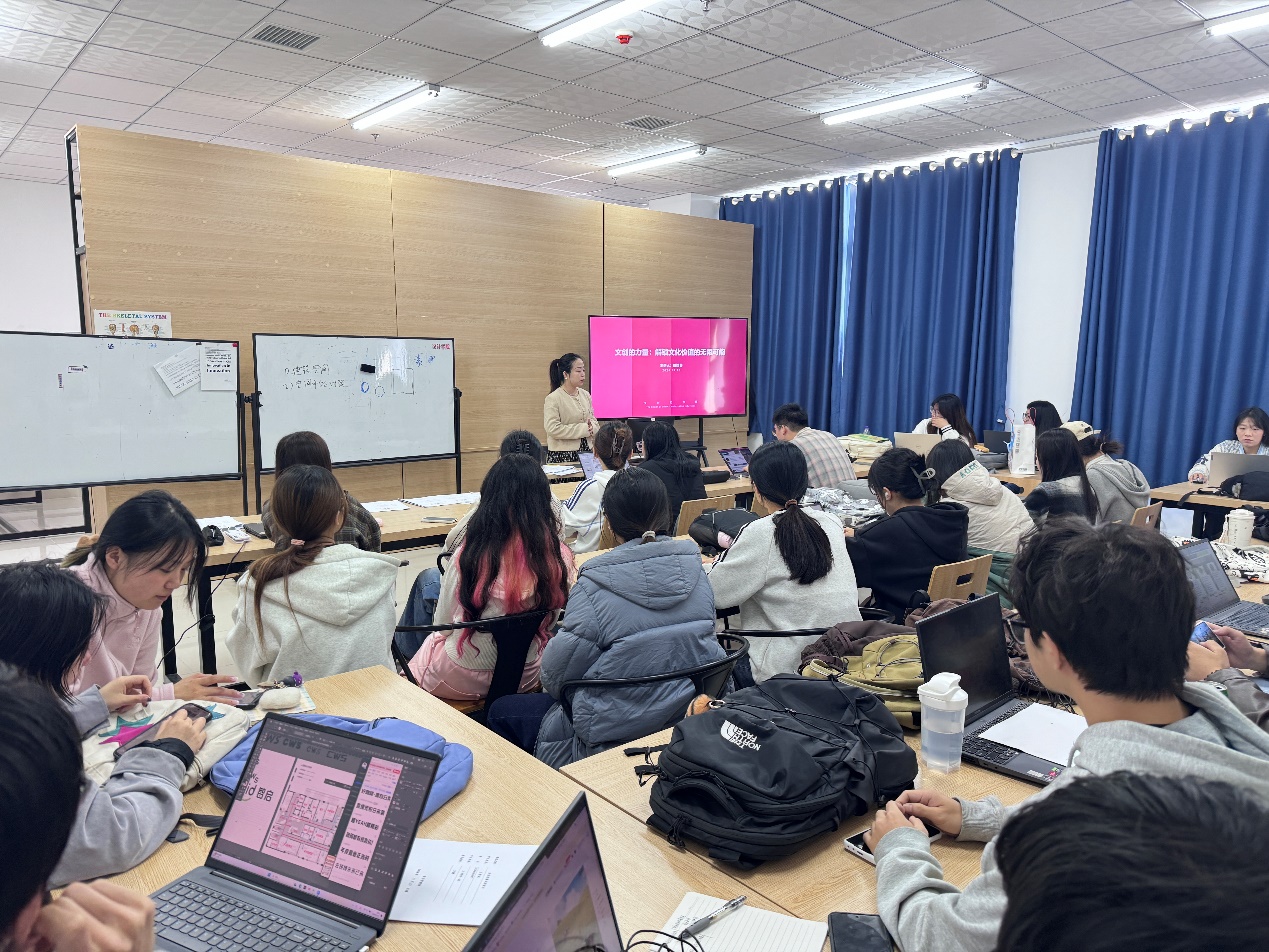 11月13日上午10:00,设计学院2024年度第九期“善思讲坛”在55-104正式开讲。创意生活设计系邀请了科大讯飞品牌市场中心高级品牌经理陆颖异女士做了《文创的力量:解锁文化价值的无限可能》主题讲座,设计学院部分教师及工艺美术、视觉传达专业学生到场聆听。