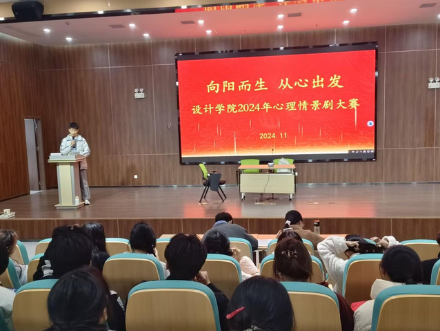 为引导学生关注自身及他人身心健康,2024年11月19日下午2:30 ,设计学院心理工作站(知心语社)于55栋205报告厅举办“向阳而生,从心出发”主题心理情景剧表演赛。本次活动旨在以“情景剧”形式生动呈现同学们在学业、社交、家庭中等多方面遭遇的困扰,帮助同学们更直观的发现并解决问题,传递积极心理正能量,营造积极向上的氛围。