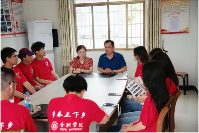 6月23日上午八点半,合肥学院设计学院暑期“三下乡”社会实践重点团队在带队老师吴娴的组织下,开始了今天的活动日程。上午八点四十,吴老师和当地村干部一起带领同学们到梧川村党群服务中心,在党群中心会议室与梧川村党总支第一书记申圣庆召开对接会。申书记首先对合肥学院设计学院暑期三下乡社会实践重点团队师生们的到来表示热烈欢迎,其次,申书记向队员们介绍了梧川村的具体情况,梧川村村民有1600余人,485户,房屋建筑以村支部为中心发散性布局。村干部团队年轻化、专业化、知识化,高中以上学历干部占百分之八十以上,以洪海飞为代表的年轻知识分子,积极响应党的乡村振兴政策号召,大学毕业后选择回到家乡扎根基层,担任梧川村村长。梧川村以大会山红色文化旅游为依托,附带草莓、菊花等特色农业,走“红色强村,绿色富农”发展道路,引起各界关注,于2021年成功脱贫,由绩溪县贫困村转为示范村,2019年获得“中国美丽休闲乡村”、2021年获得“先进基层党组织”等各项殊荣。申书记希望设计学院三下乡团队的同学们,利用好在梧川村一周的活动时间,利用同学们的专业特长,制作红色旅游宣传视频、宣传页、特色农产品包装设计,为美丽乡村建设助力。