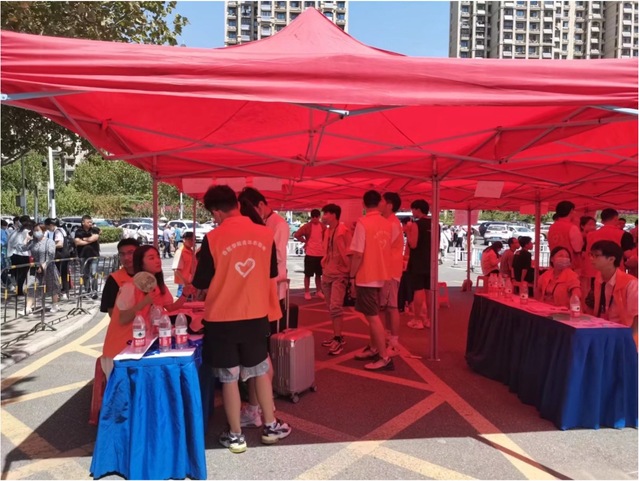 志愿者们的工作分为两部分,第一部分新生分专业报道,志愿者在报名点为新生检查健康码行程码、核酸检测报告,派发一卡通,第二部分,志愿者手提肩抗,为新生搬运行李,带领新生找到自己的宿舍,并在路上为新生介绍校园情况,提醒新生提防各种诈骗、拒绝各种上门推销。