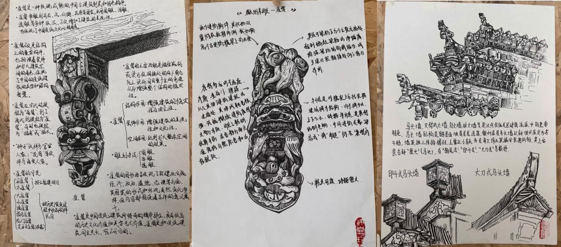 本次写生采风活动成功结合了教育与文化探索,帮助学生在理论与实践中达到平衡,并通过实地学习深化了对中国文化遗产的理解与欣赏,提升了他们的艺术创作与设计能力。参与活动的学生加深了对中国传统文化的理解与尊重,增强了艺术表达和创新设计的能力。特别是视觉传达设计专业的学生,他们的作品不仅展示了写生绘画技术,还通过深入的民俗文化研究,展示了对皖南徽派文化的深刻洞察。
