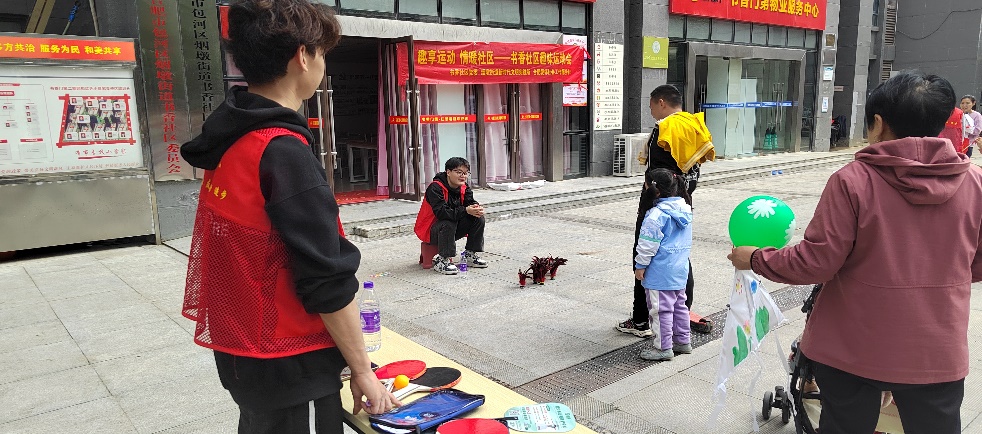 体育节当天,设计学院志愿者早早地来到活动现场,开始了紧张而有序的工作。志愿者们搭建服务台,负责引导居民参与各个体育项目,解答他们的疑问。体育节活动内容包括跳房子、拉力赛、画风筝、投壶、踢毽子、乒乓球、大富翁、手脚并用等游戏,在比赛过程中,志愿者们负责现场秩序维护,帮助照看小朋友,并在选手们完成任务后给予盖章奖励、兑换奖品。此外,志愿者还担任部分比赛项目的裁判。