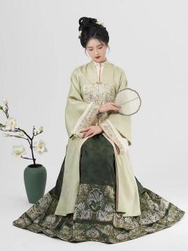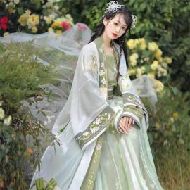 唐 | 刺绣s码、m码各3件(头饰、发包、扇子配套) 唐褙子(玲珑麻)圆领衫(玲珑锻)八破裙(长丝斜纹)