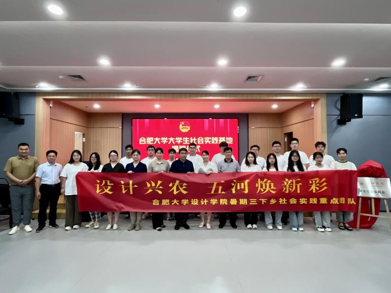 五河县县委常委、县委统战部部长吴雪玲、组织部副部长方圆、文旅体局党组成员杨大祥、组织部人才办主任黄艳珍、团县委副书记凌瑞志,和设计学院指导老师吴娴及团队15名成员一同参加揭牌仪式。
