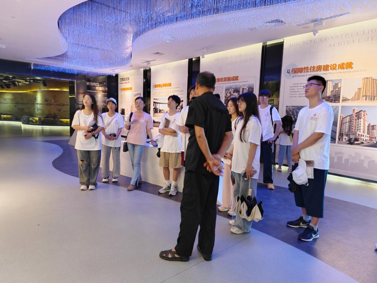 随后,团队一行来到了五河县城市规划馆。同学们在城市规划馆内,通过沙盘模型、详实的规划图等丰富的资料,对五河县的历史起源、发展历程、规划理念以及未来发展方向有了更为直观和全面的了解。城市规划馆的工作人员还给同学们介绍了五河县在城乡建设、工业农业发展、文旅产业和经济社会发展方面所取得的成就,以及面临的挑战和机遇。同学们纷纷表示,将把此行的所见所感、所学所思,转化为今后学习和实践中的动力和灵感。