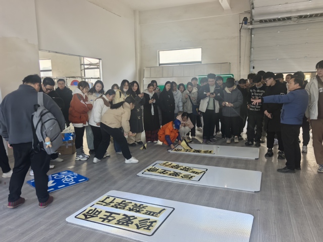 活动最后是动手实践环节,在技术人员的指导下,学生们动手参与荧光涂料的涂抹及荧光贴张贴。通过实际操作,学生们深刻体会到交通安全设施在夜间警示驾驶员与行人、降低交通事故风险中的重要作用。