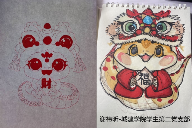 为深入学习贯彻习近平文化思想,激励学生党员坚定文化自信、勇担新的文化使命,2025120-31日,城市建设与交通学院学生第二党支部在寒假期间开展“我们的春节世界的非遗——画蛇添福”主题党日活动,支部全体党员参加。